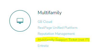 - Multifamily: Click Multifamily Support ticket (not IT)