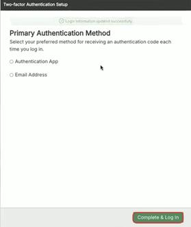 - System will prompt to identify the preferred authentication method. If the user is not using an authentication app, please select email.
