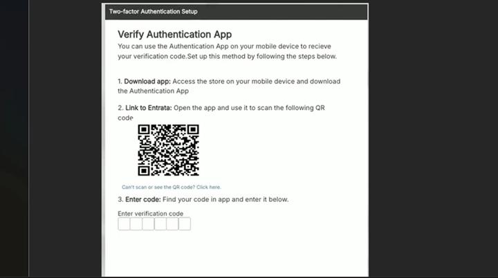 - If using an authentication app, the system will prompt for the verification code. If the user is not using the verification app click "Skip"